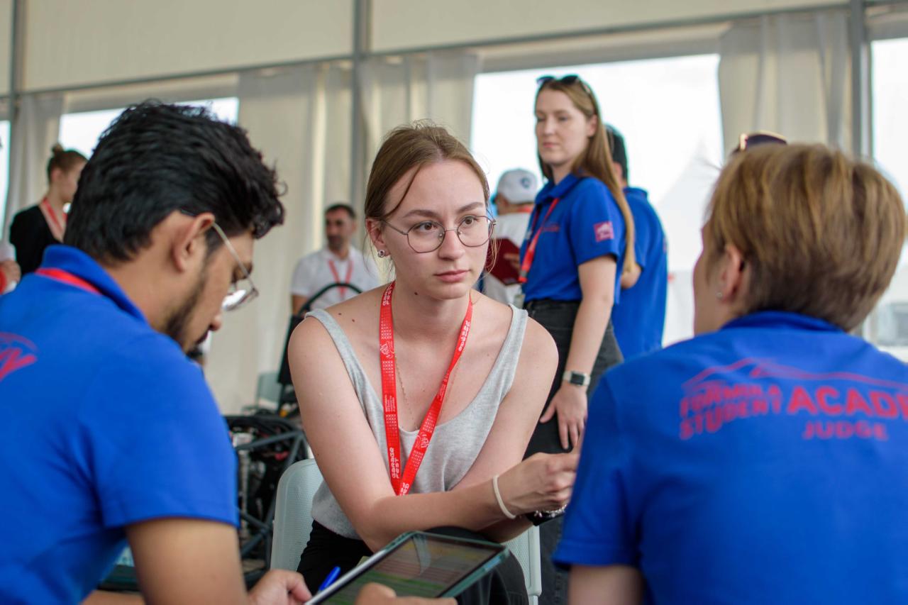 Елизавета Рыжова — руководитель экономического отдела команды, студент направления «Экономика логистических систем и интермодальных перевозок» — представила отчёт о стоимости и производстве, а также бизнес-план. Конструкцию болида в номинации «Engineering Design» защищал Александр Чумак — инженер-проектировщик, студент специализации «Локомотивы».