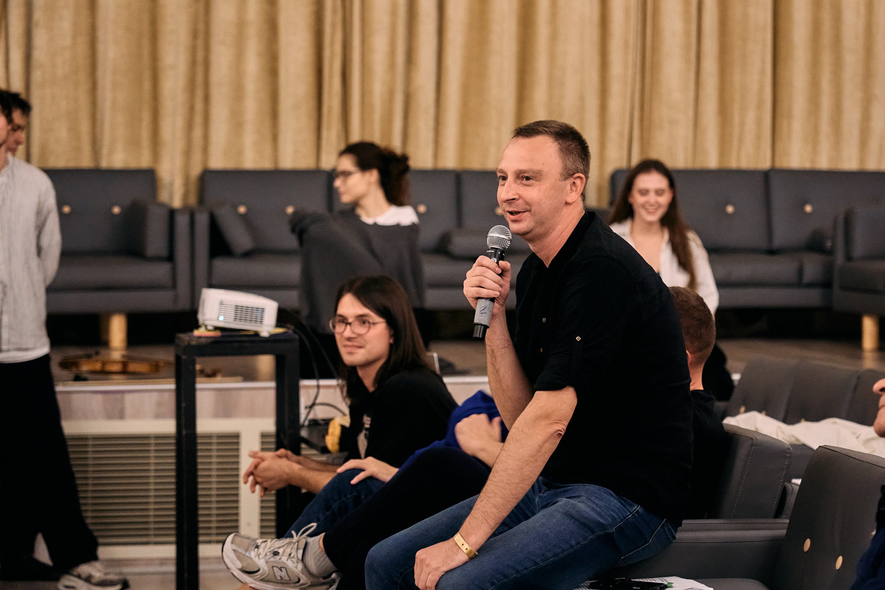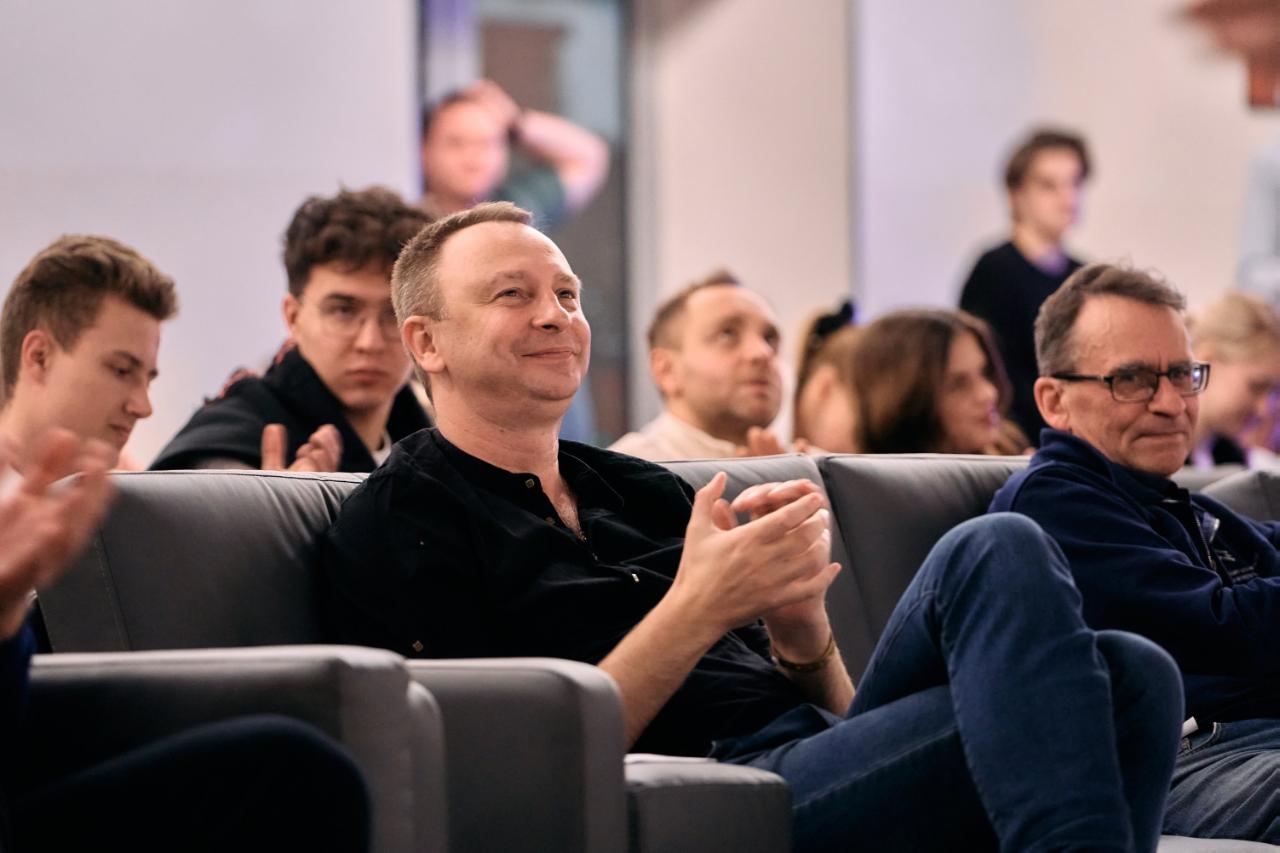 «Самый большой вызов для людей современности — быть человеком. Мне кажется, университет — это как раз то место, где ищут ответы на этот вызов. На этой школе мы пытались совместить две разные вещи: проектную, мыслительную деятельность и искусство, творчество, в каком-то смысле иррациональное. Это очень сложно и очень здорово, вы все большие молодцы».