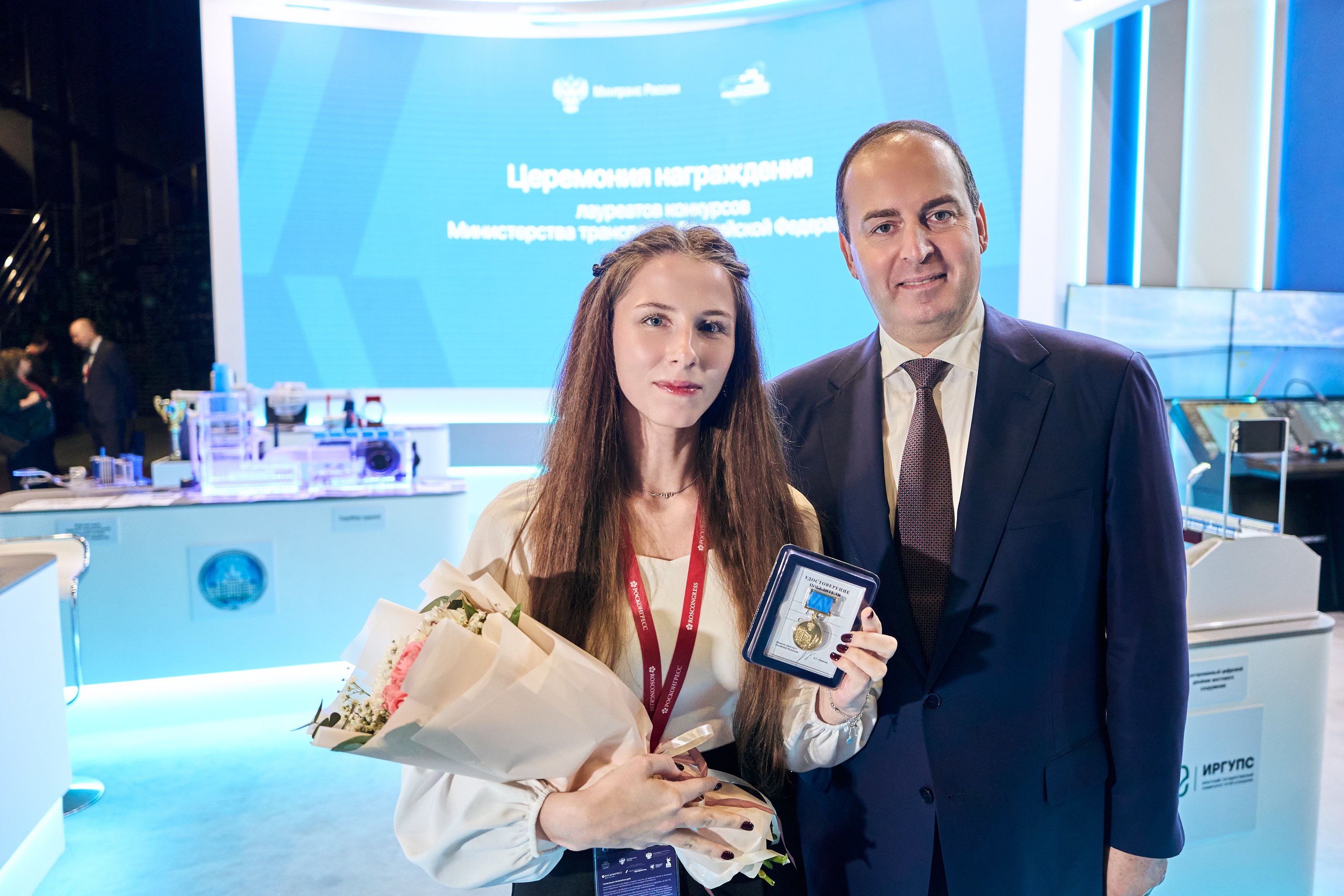В этот же день состоялась торжественная церемония награждения победителей конкурсов «Молодые учёные транспортной отрасли» и «Лучший студенческий реферат». Медали вручал первый заместитель Министра транспорта РФ Константин Пашков.