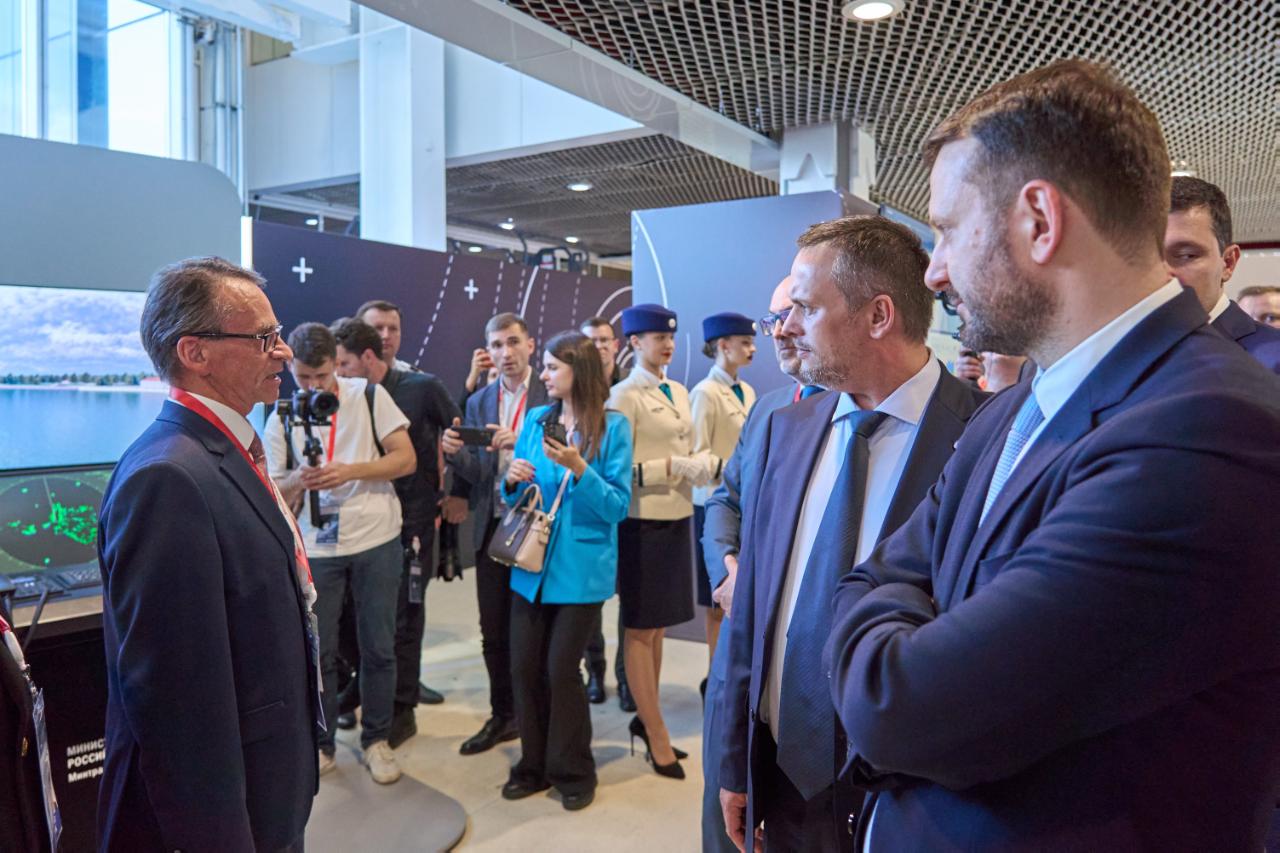 Стенд с транспортным наработками в сфере автономного управления судами и грузовыми авто, где расположились проекты Российского университета транспорта, посетили глава Министерства транспорта Андрей Никитин и заместитель руководителя администрации президента Российской Федерации Максим Орешкин, а также министр промышленности и торговли Антон Алиханов.