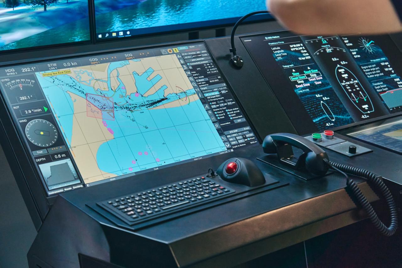 Вторая разработка, презентованная РУТ, — это тренажёр, предназначенный для отработки навыков по управлению и маневрированию автономными судами. С помощью VR он полностью имитирует судовое оборудование, включая приборы и устройства, а также моделирует погодные и навигационные условия самых популярных акваторий морских участков и портов в режиме реального времени. На таких тренажёрах готовятся и проходят сертификацию судоводители, экипаж судов, операторы системы управления движением, персонал центра дистанционного управления. На сегодняшний момент тренажёр не имеет зарубежных аналогов.