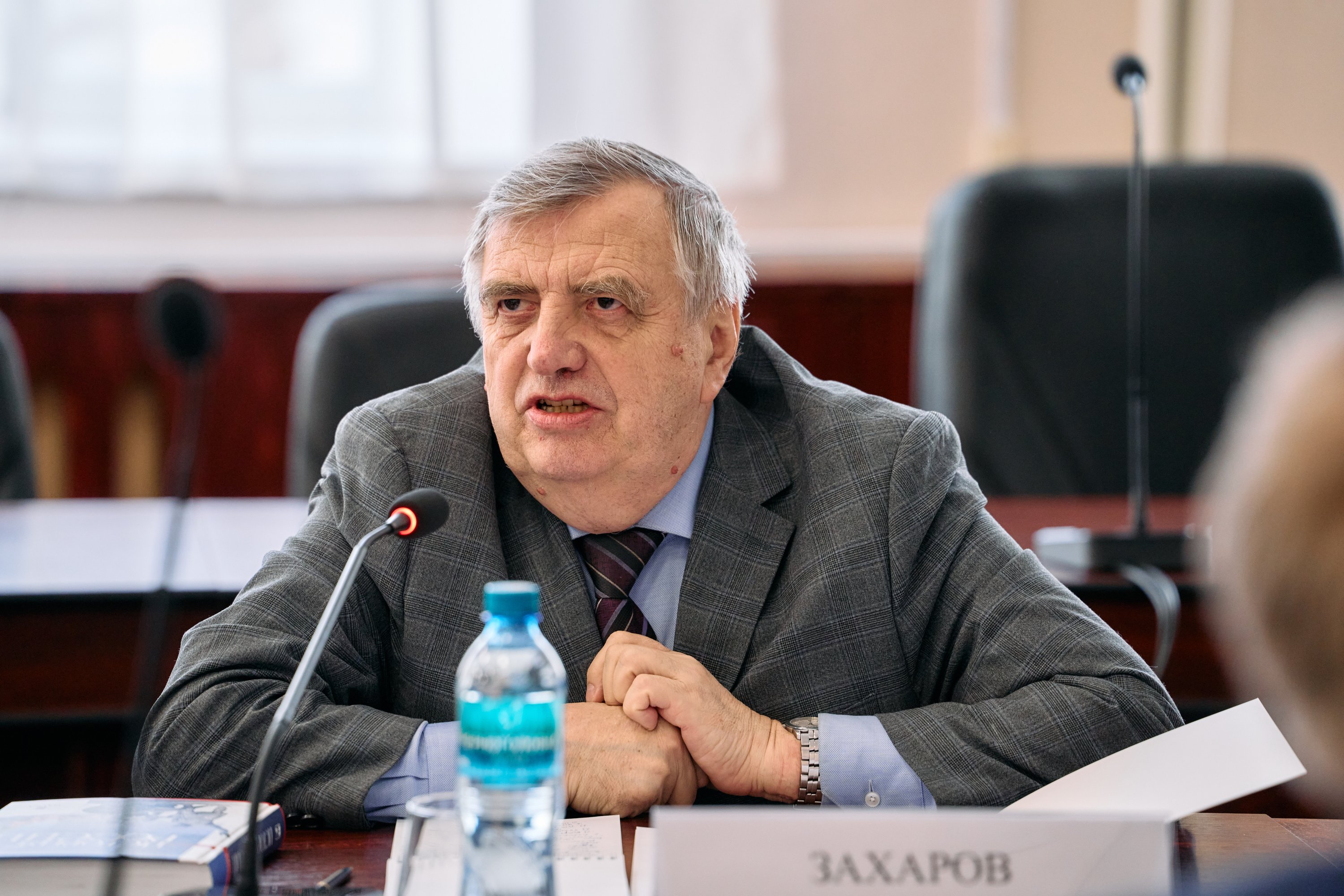 С первым докладом выступил главный научный сотрудник Института российской истории РАН Виктор Захаров — автор множества книг по истории, главный редактор журнала «Российская история», координатор создания общевузовского учебника по истории, который вышел в прошлом году. Особенность его в том, что он объединяет в себе историю страны и историю отраслей и поделён на шесть модулей, один из которых посвящён истории транспорта. Учебник написан в сотрудничестве с вузами. Виктор Захаров рассказал об истории Института, специфике академической науки и её связи с обществом, а также об издании нового учебника по истории для вузов.